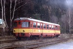Motorový vůz 820.006 odpočívá 3. dubna 1994 mezi výkony ve stanici Merklín. (Foto: Ing. Gustav Höhn)