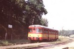 Motorový vůz 820.009 ve stanici Krásný Jez čeká 8. srpna 1991 na souhlas k odjezdu na romantickou lokálku do Horního Slavkova a Lokte. (Foto: Ing. Gustav Höhn)