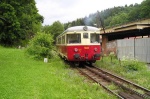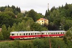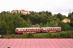 Motorový vůz 820.021 v Harrachově 5. srpna 2004. (Foto: Pavel Šturm)