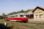 Motorové vozy 820.021 a 820.057 na cestě z Tanvaldu do Mělníka na tradiční vinobraní 17. září 2005. (Foto: Pavel Šturm)