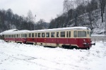 Motorové vozy 820.021 a 820.057 odstavené v depu Tanvald 26. prosince 2005. (Foto: Pavel Šturm)